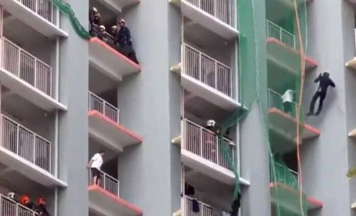 Οι πυροσβέστες ακροβολίστηκαν στο κτήριο δεμένοι με σχοινιά ασφαλείας. Η γυναίκα δεν έλεγε να πειστεί να κατέβει από το μπαλκόνι της πολυκατοικίας της Σιγκαπούρης και έδειχνε έτοιμη να κάνει βουτιά θανάτου και να αυτοκτονήσει.