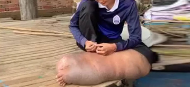 Ένας 27χρονος από την Καμπότζη έχει μείνει με ένα πόδι πέντε φορές πάνω από το φυσιολογικό μέγεθος, εδώ μάλιστα και 20 χρόνια.