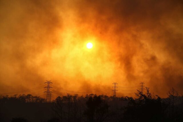 Οι φωτιές μαίνονται καθώς οι θερμοκρασίες βρίσκονταν χθες στους 40° Κελσίου και έπνεαν άνεμοι με ριπές ταχύτητας 50 χιλιομέτρων ανά ώρα.