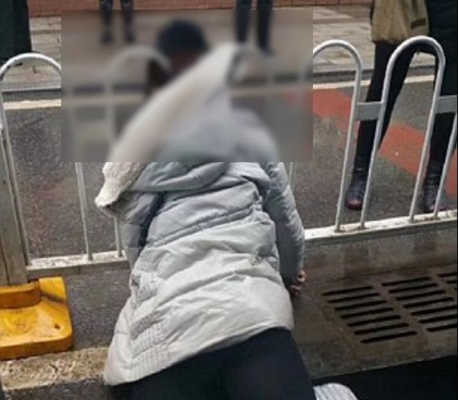 Άφωνοι και ανήμποροι να βοηθήσουν παρακολουθήσαν τον τραγικό θάνατο μιας γυναίκας οι πολίτες στην πόλη Hankou στην επαρχία Hubei στην κεντρική Κίνας. Η γυναίκα ήταν στο πεζοδρόμιο όταν σκόνταψε πάνω στις αποσκευές της και έπεσε πάνω στα κάγκελα που ήταν ακριβώς δίπλα. Για κακή της τύχη το κεφάλι της σφηνώθηκε ανάμεσα στα σιδερένια κάγκελα, σε ένα χώρο που μετά βίας μπορεί να χωρέσει μια παλάμη, με αποτέλεσμα να βρει να σκοτωθεί σχεδόν ακαριαία.