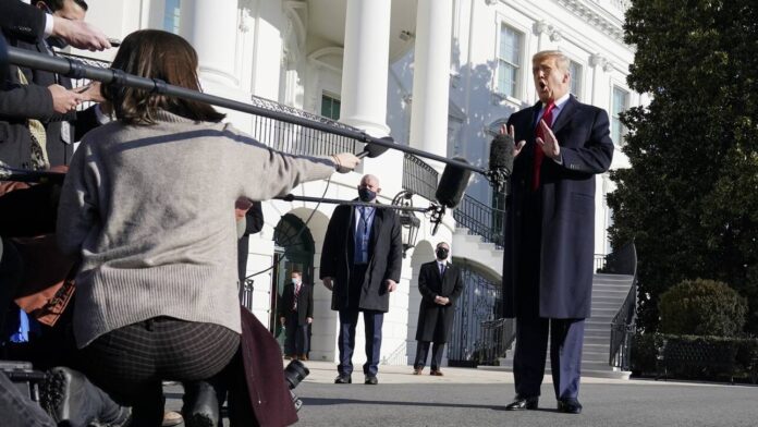 Σε αυτήν, την πρώτη συνομιλία του με δημοσιογράφους από τις 8 Δεκεμβρίου, ο απερχόμενος πρόεδρος απέφυγε να απαντήσει στην ερώτηση αν προτίθεται να παραιτηθεί. Σχολίασε όμως τις ενέργειες που κάνουν οι Δημοκρατικοί για να τον παραπέμψουν, για δεύτερη φορά στη θητεία του.«Η παραπομπή προκαλεί τεράστιο θυμό και είναι πραγματικά ένα φρικτό πράγμα αυτό που κάνουν» είπε, εκτιμώντας ότι η προσπάθεια να τον κατηγορήσουν για υποκίνηση εξέγερσης εντάσσεται στο «κυνήγι μαγισσών» εναντίον του.
