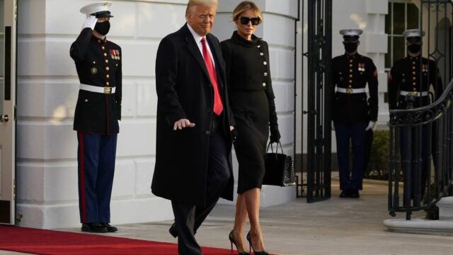 Ο Ντόναλντ Τραμπ επιβιβάστηκε στην συνέχεια για το τελευταίο του ταξίδι με το Air Force One, που θα το μεταφέρει στο θέρετρο Μαρ-α-Λάγκο στην Φλόριντα, υπό τους ήχους του τραγουδιού «My Way» του Φρανκ Σινάτρα.