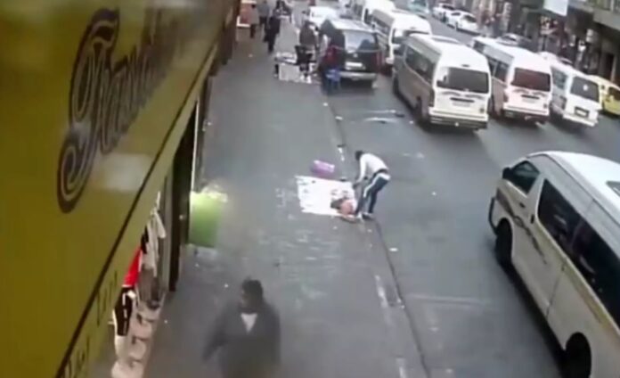 Βίντεο από κάμερα ασφαλείας στο δρόμο του Γιοχάνεσμπουργκ, δείχνει την ώρα που περνά κόσμος να γίνεται μια μεγάλη έκρηξη η οποία τινάζει στον αέρα τουλάχιστον 5 βαν.