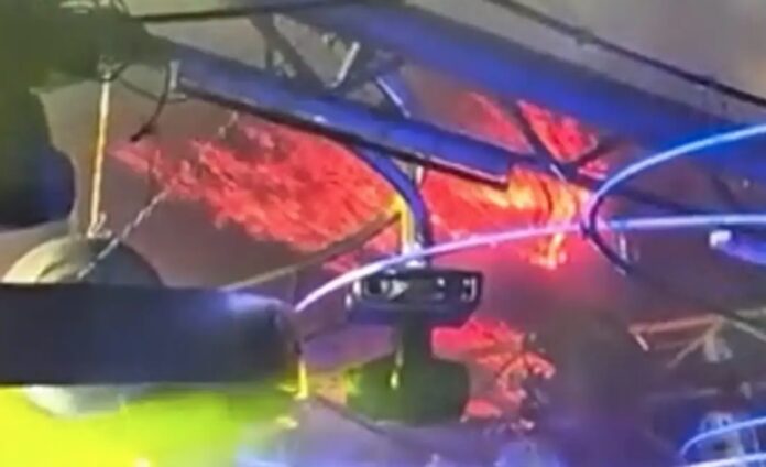 Όλα ξεκίνησαν όταν ξαφνικά σπίθες από πυροτεχνήματα που βρίσκονται στην σκηνή εκτοξεύονται στην οροφή και εξαπλώνονται μέσα σε λίγα λεπτά. Πανικόβλητοι όσοι παρακολουθούσαν τη συναυλία, τρέχουν να βγουν από το κτίριο.
