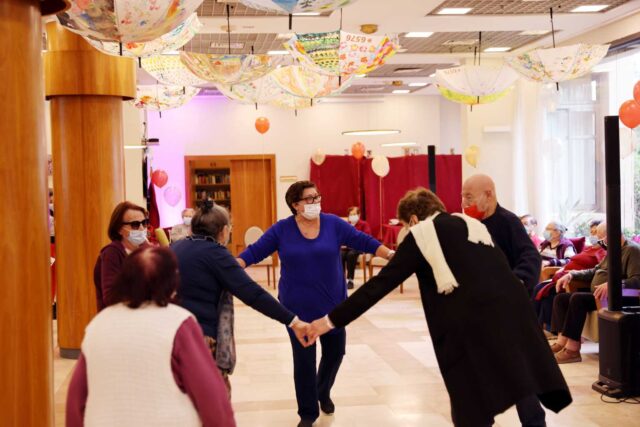 Στην εγκατάσταση υποβοηθούμενης διαβίωσης Λεβ Γκανίμ στην πόλη Νετάνια, οι ένοικοι, εξακολουθώντας να φορούν προστατευτικές μάσκες, έκαναν ένα χορευτικό πάρτι για να γιορτάσουν τον εμβολιασμό τους με τη δεύτερη και τελευταία δόση.