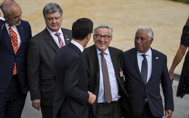Υποβασταζόμενος, καθώς έχανε διαρκώς την ισορροπία του εμφανίστηκε λίγο πριν από το εορταστικό δείπνο του ΝΑΤΟ ο πρόεδρος της Ευρωπαϊκής Επιτροπής Ζαν-Κλοντ Γιούνκερ.
