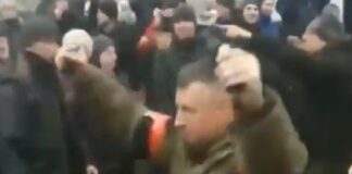 Ρώσοι στρατιώτες κρατούν στα χέρια χειροβομβίδες και απειλούν πολίτες
