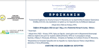 Σήμερα η εκδήλωση της Ένωσης Κυπρίων Μαγνησίας