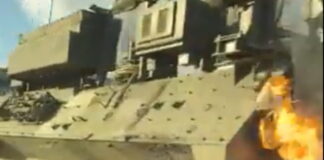 Ουκρανοί πετούν μολότοφ σε ρωσικό τεθωρακισμένο και ζητωκραυγάζουν