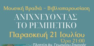«Ανιχνεύοντας το ρεμπέτικο»: Μουσική βραδιά- Βιβλιοπαρουσίαση στην πλατεία Αγ. Γεωργίου Ζαγοράς