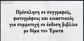 Πρόσκληση σε συγγραφείς, φωτογράφους και εικαστικούς για συμμετοχή σε έκδοση βιβλίου...