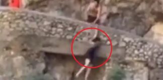 Η στιγμή που γυναίκα παραπατάει την ώρα της βουτιάς και πέφτει...