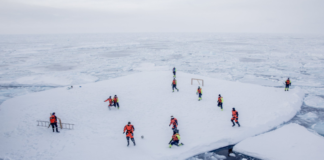 Αγώνας ποδοσφαίρου σε παγόβουνο με θεατές πολικές αρκούδες