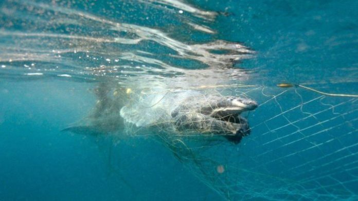 Οι διασώστες που έσπευσαν στην περιοχή χρειάστηκαν σχεδόν δύο ώρες για να απελευθερώσουν το θηλαστικό από τα δίχτυα.