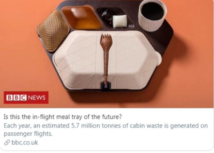 Όσοι έχετε ταξιδέψει με αεροπλάνο θα έχετε παρατηρήσει πως ό,τι προσφέρουν οι αεροσυνοδοί στους επιβάτες περιέχει πλαστικό. Από τους δίσκους του φαγητού και τα μαχαιροπίρουνα, έως τα σακουλάκια μέσα στα οποία βρίσκονται τα ακουστικά.
