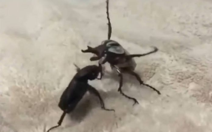 Για άγνωστο λόγο, δυο σκαθάρια είπαν να μονομαχήσουν με τρόπο… ολότελα ανθρώπινο.