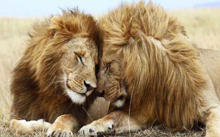 Την ρομαντική συνεύρεση ανάμεσα σε δύο αρσενικά λιοντάρια «αιχμαλώτισε» με την κάμερά του ο φωτογράφος Paul Goldstein. Εντόπισε τα δύο λιοντάρια σε ένα απομονωμένο σημείο πίσω από κάτι θάμνους στο εθνικό πάρκο Μασάι Μάρα.