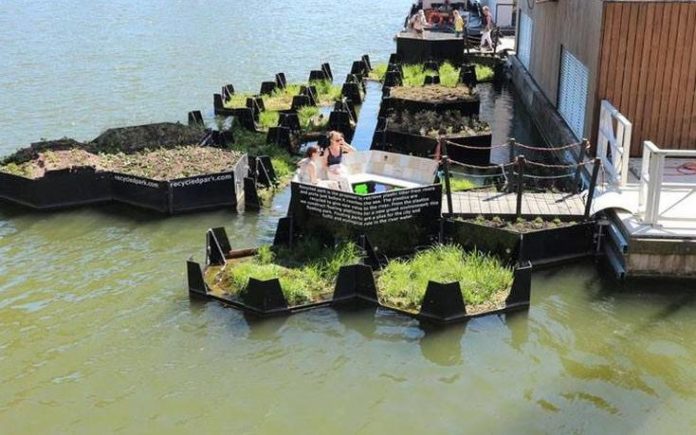 Στόχος της οργάνωσης «The Recycled Island Foundation» (Ίδρυμα της Ανακυκλωμένης Νήσου) στο Ρότερνταμ είναι η περισυλλογή απορριμμάτων από τους ποταμούς και τις εκβολές τους. Τώρα, με απορρίμματα που περισυνέλεξε από τον ποταμό Μάας και το λιμάνι της πόλης, κατασκεύασε ένα πρωτότυπο πλωτό πάρκο.