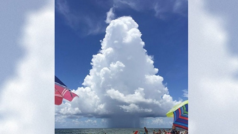Αυτό επιβεβαιώνεται από μια φωτογραφία που τράβηξε ο Ρικ Γκάις, ένας κάτοικος της περιοχής Γκαλφ Σόουρς της Αλαμπάμα, στην τοπική παραλία: ένα εντυπωσιακά συμμετρικό νέφος σαν χριστουγεννιάτικο δέντρο εμφανίζεται να «αιωρείται» πάνω από τη θάλασσα.