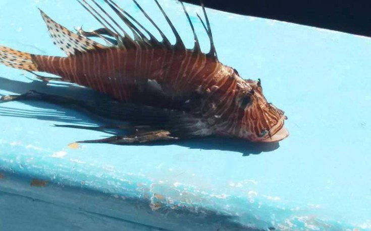 Πρόκειται για ένα λεοντόψαρο, πραγματικά εντυπωσιακό στην όψη, με όμορφους χρωματισμούς, αλλά και μεγάλα αγκάθια. Ο ψαράς, ευτυχώς, δεν το κατανάλωσε, καθώς -όπως δημοσιεύει η Κρητική Επιθεώρηση- ενημερώθηκε εγκαίρως πως όταν το ψάρι είναι εκτός του «φυσικού» του τόπου καταγωγής δεν πρέπει να φαγωθεί.
