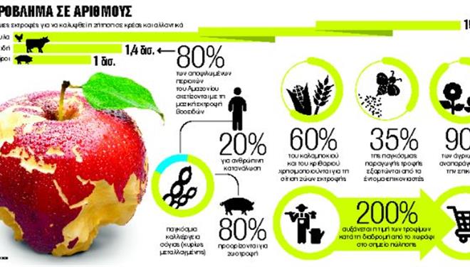 Η αλλαγή στις διατροφικές συνήθειες αλλά και στον τρόπο που παράγουμε την τροφή μας – πέρα από τα οφέλη στην ανθρώπινη υγεία – μπορεί να δώσει τροφή σε εκατομμύρια ανθρώπους και να σώσει τον πλανήτη! Σύμφωνα με την υπεύθυνη εκστρατείας για τη βιώσιμη γεωργία της περιβαλλοντικής οργάνωσης Greenpeace Ελενα Δανάλη, «η βιομηχανική παραγωγή κρέατος και γαλακτοκομικών προϊόντων επηρεάζει το κλίμα, τα δάση, το νερό και την υγεία μας». Οπως λέει, «εάν όλοι στραφούμε προς μια υγιέστερη διατροφή με περισσότερα λαχανικά και όσπρια και λιγότερο κρέας, θα μπορούσαμε να αποφύγουμε 5 εκατ. θανάτους τον χρόνο – δηλαδή εννέα ανθρώπους το λεπτό».