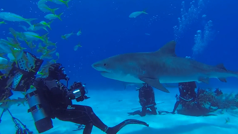 Ομάδα ατρόμητων δυτών βρέθηκε στο βυθό της θάλασσας, έχοντας για παρέα καρχαρίες τίγρεις και πολλά ψάρια.