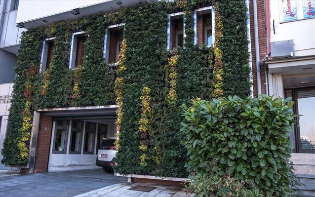 Συνολικά 804 γλαστράκια με τέσσερα είδη φυτών τοποθετήθηκαν στην πρόσοψη του κτηρίου της Διεύθυνσης Αστικού Περιβάλλοντος, στην οδό Κλεάνθους 18 στη Θεσσαλονίκη, σε μια επιφάνεια πενήντα τετραγωνικών μέτρων.
