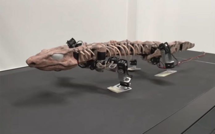 Κι έτσι έφτιαξαν ένα ρομπότ, που βασίζεται σε ένα αμφίβιο ερπετό που έζησε πριν από 300 εκατ. χρόνια, ώστε να μελετήσουν πώς τα ζώα που προηγήθηκαν των δεινοσαύρων περπατούσαν στη στεριά.Όπως μας λένε στη μελέτη τους που δημοσιεύτηκε στην έγκριτη επιθεώρηση «Nature», οι γνώσεις που αποκόμισαν από τον OroBOT υποδεικνύουν ότι ο κοινός πρόγονος όλων των τετράποδων ζώων (περιλαμβανομένου και του ανθρώπου) δεν σερνόταν πιθανότατα στη γη σαν σαλαμάνδρα. Αντιθέτως, τα προϊστορικά αυτά πλάσματα μπορούσαν ήδη από τόσο παλιά να βαδίζουν, με τον τρόπο που το κάνει σήμερα ένας κροκόδειλος.