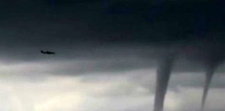 Η στιγμή που αεροπλάνο πετά δίπλα σε τρεις υδροστρόβιλους