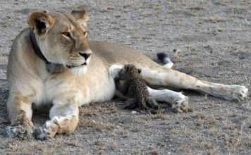 Μοναδικό φαινόμενο στην Τανζανία, λέαινα υιοθέτησε και θηλάζει μικρή λεοπάρδαλη