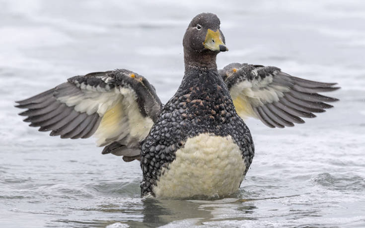 Τα τρία από τα τέσσερα είδη της συγκεκριμένης πάπιας (Tachyeres brachypterus) που ζει στη Λατινική Αμερική δεν μπορούν να πετάξουν. Όπως δεν μπορούν και κάποια αρσενικά του τέταρτου και πτητικού είδους, λόγω του βάρους τους. Μπορούν και τρέχουν όμως πάνω στο νερό με τη βοήθεια των φτερών τους, την ίδια ώρα που είναι και παροιμιωδώς επιθετικά…