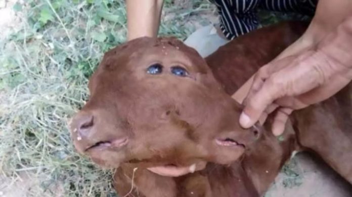 Ένα μεταλλαγμένο μοσχάρι με δύο κεφάλια που μπορεί όμως να θηλάσει από τη μητέρα του γεννήθηκε στην επαρχία Shaanxi, σοκάροντας του κατοίκους του χωριού.