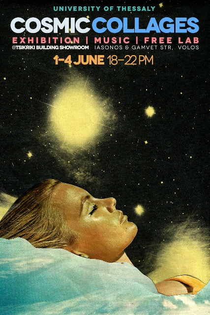 Την Τετάρτη 1 Ιουνίου, στις 7 το βράδυ, στο κτίριο Τσικρίκη του Πανεπιστημίου Θεσσαλίας (Ιάσονος και Γαμβέτα), θα πραγματοποιηθούν τα εγκαίνια της έκθεσης ’Cosmic Collages’’ του Andrea Floris.