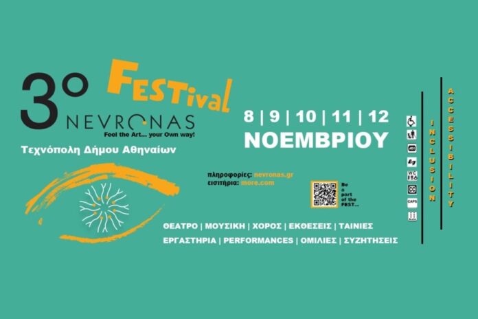 Στις 8, 9, 10, 11 και 12 Νοεμβρίου η Τεχνόπολη Δήμου Αθηναίων ανοίγει τις πόρτες της για να υποδεχθεί το μεγαλύτερο Προσβάσιμο και Συμπεριληπτικό Φεστιβάλ Παραστατικών Τεχνών της Ελλάδας. Το Nevronas FESTival, που διακρίθηκε ως άριστη πρακτική στα Diversity, Equity & Inclusion Awards 2024 με Platinum και Gold βραβεία, για 3η συνεχόμενη χρονιά παρουσιάζει ανάπηρους και μη ανάπηρους καλλιτέχνες και συμπεριληπτικά καλλιτεχνικά σχήματα, δίνοντας την ευκαιρία σε μικρούς και μεγάλους, να απολαύσουν χωρίς περιορισμούς, Θέατρο, Μουσική/Συναυλίες, Χορό, Εκθέσεις, Ταινίες, Εργαστήρια, Performances, εμπνευσμένες Ομιλίες και Συζητήσεις σημαντικού πολιτιστικού, και όχι μόνο, ενδιαφέροντος.