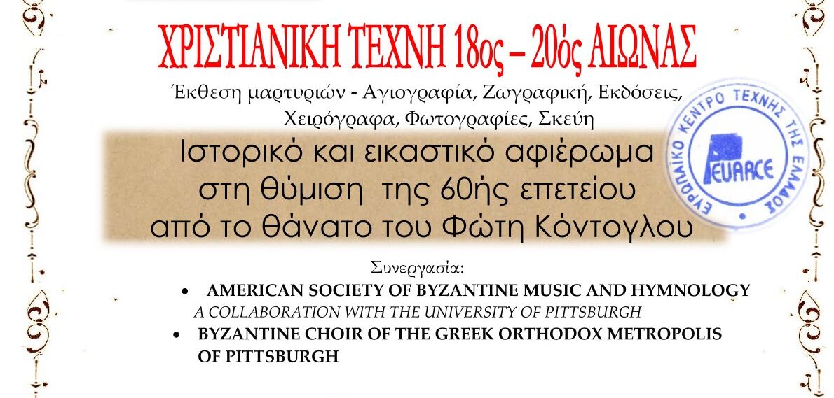 Η εκδήλωση είναι αφιερωμένη στη μνήμη της 60ής επετείου από τον θάνατο του Φώτη Κόντογλου και περιλαμβάνει έκθεση αγιογραφίας, ζωγραφικής, εκδόσεων, χειρογράφων, φωτογραφιών και σκευών – ιστορικών ντοκουμέντων από τον 18ο έως τον 20ό αιώνα.