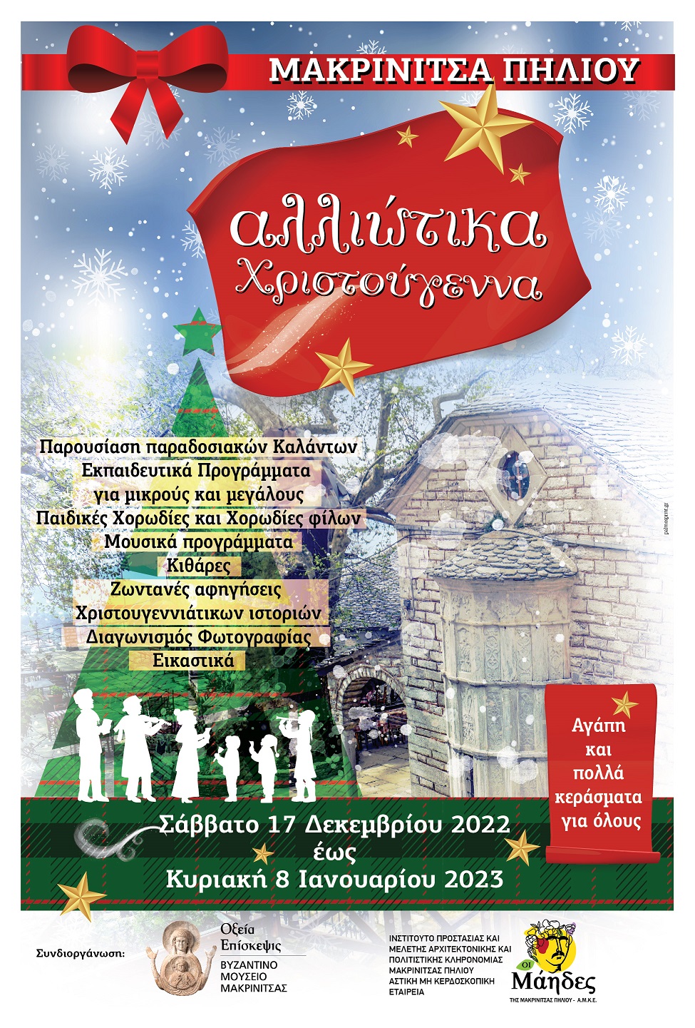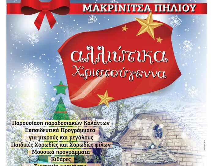 Ξεκίνησαν τα «Αλλιώτικα Χριστούγεννα» φέτος στη Μακρινίτσα, με σκοπό να δώσουν μια ευχάριστη γιορταστική νότα στους μόνιμους κατοίκους αλλά και για να εμπλουτίσουν και να ομορφύνουν τις μέρες παραμονής των χιλιάδων επισκεπτών του χωριού και ολόκληρου του Πηλίου της περιόδου αυτής.