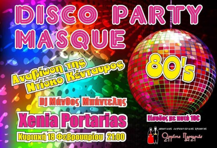 O Σύλλογος “Ορμίνιο” Πορταριάς, διοργανώνει το Πάρτυ της Χρονιάς!!!! Όπως τονίζεται στην ανακοίνωση-πρόσκληση, «η παλιά disco ΚΕΝΤΑΥΡΟΣ του ΧΕΝΙΑ ΠΟΡΤΑΡΙΑΣ θα ανοίξει μόνο για ένα μαγικό βράδυ, για παλιούς και νέους φίλους την Κυριακή 18 Φεβρουαρίου για ένα ταξίδι στον χρόνο!!!! Τα ’80s που όλοι αγαπάμε!!! Ένα μασκέ αποκριάτικο πάρτυ, θα μας ταξιδέψει κάτω από τα μαγικά φώτα της Ντισκομπάλας και με ρυθμούς από την θρυλική δεκαετία των ‘80s σε μια άλλη εποχή. Θα βρεθούμε όλοι εκεί μετά τις 9:00μμ»