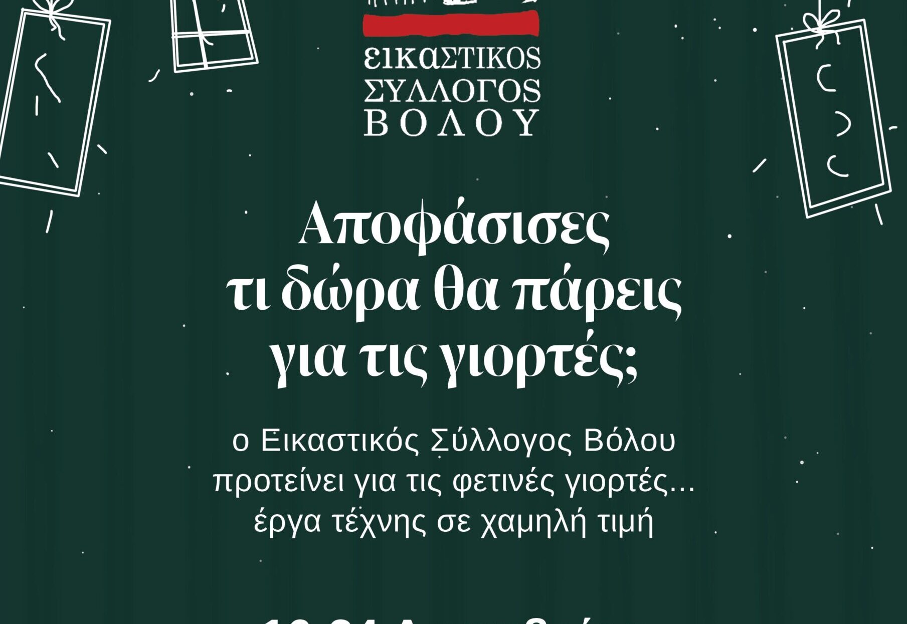 Ο Εικαστικός Σύλλογος Βόλου επιστρέφει για δεύτερη συνεχή χρονιά με την έκθεση «Αποφάσισες τί δώρα θα πάρεις για τις γιορτές;» που παρουσιάζεται στην «Χάρτα», Σκενδεράνη 16.
