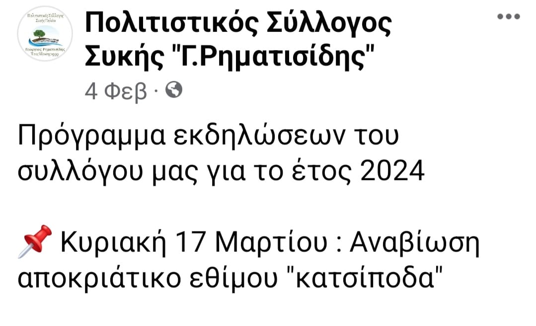 Την Κυριακή 17 Μαρτίου στη Συκή θα αναβιώσει το αποκριάτικο έθιμο του «κατσίποδα».