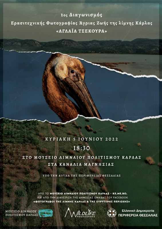 Την Παγκόσμια Ημέρα Περιβάλλοντος γιορτάζει του Μουσείο Λιμναίου Πολιτισμού Κάρλας-ΚΕ.ΜΕ.ΒΟ. συνδιοργανώνοντας με τη δημόσια ομάδα του facebook ® «ΦΩΤΟΓΡΑΦΟΙ ΤΗΣ ΛΙΜΝΗΣ ΚΑΡΛΑΣ & ΤΗΣ ΕΥΡΥΤΕΡΗΣ ΠΕΡΙΟΧΗΣ» την επίσημη εκδήλωση απονομής των βραβείων και των επαίνων του 1ου Διαγωνισμού Ερασιτεχνικής Φωτογραφίας Άγριας Ζωής της λίμνης Κάρλας «ΑΓΛΑΪΑ ΤΣΕΚΟΥΡΑ» που θα πραγματοποιηθεί αύριο Κυριακή 5 Ιουνίου 2022 (Παγκόσμια Ημέρα Περιβάλλοντος) στις 18.30 στον χώρο του Μουσείου στα Κανάλια Δήμου Ρήγα Φεραίου Μαγνησίας.