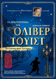 Βασισμένο στο έργο του Καρόλου Ντίκενς, η Παιδική Σκηνή του Φώτη Σπύρου παρουσιάζει Τα Χριστούγεννα του ΟΛΙΒΕΡ ΤΟΥΙΣΤ σε μετάφραση Νίκου Καζαντζάκη, διασκευή για το θέατρο Φώτη Σπύρου και σκηνοθεσία Νίκου Χρηστίδη.