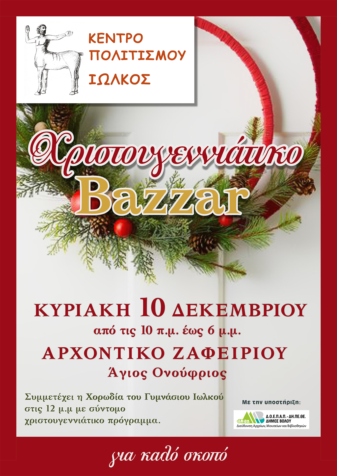Έτσι λοιπόν το bazaar του Κέντρου Πολιτισμού Ιωλκός ανοίγει τις πύλες του στο Αρχοντικό Ζαφειρίου, αυτή την Κυριακή 10 Δεκεμβρίου 2023 , από τις 10.00 π.μ. έως 6.00 μ.μ. Παράλληλα, οι επισκέπτες θα έχουν την ευκαιρία να απολαύσουν την χορωδία του Γυμνασίου Ιωλκού , σε ένα σύντομο μουσικό χριστουγεννιάτικο πρόγραμμα την ίδια ημέρα στις 12 μ.μ..