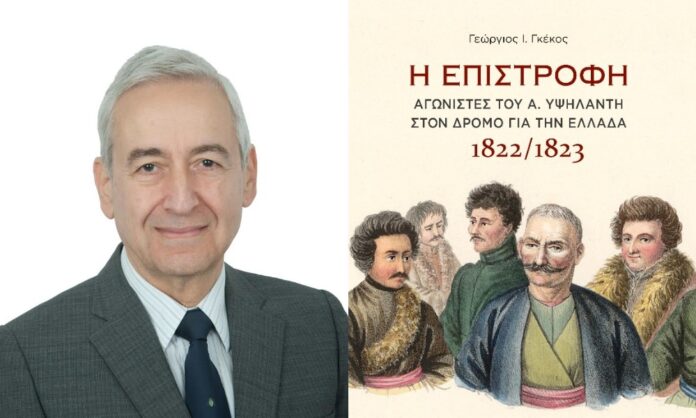 Ο κ.Γκέκος, που γεννήθηκε στον Βόλο, με εμπεριστατωμένες έρευνες σε αρχεία και κάθε πρόσφορη ιστορική πηγή παρακολούθησε την τύχη των αγωνιστών του Αλέξανδρου Υψηλάντη και συνέγραψε σχετικό βιβλίο με τίτλο «Η Επιστροφή», το οποίο βραβεύτηκε από την Ακαδημία Αθηνών. Στην ομιλία του Σαββάτου θα αναφερθεί ειδικότερα στους Θεσσαλούς αγωνιστές του Υψηλάντη. Πρόκειται για ενδιαφέρον θέμα, διότι εντόπισε ονόματα, τόπους καταγωγής, καθώς και προσωπογραφίες.