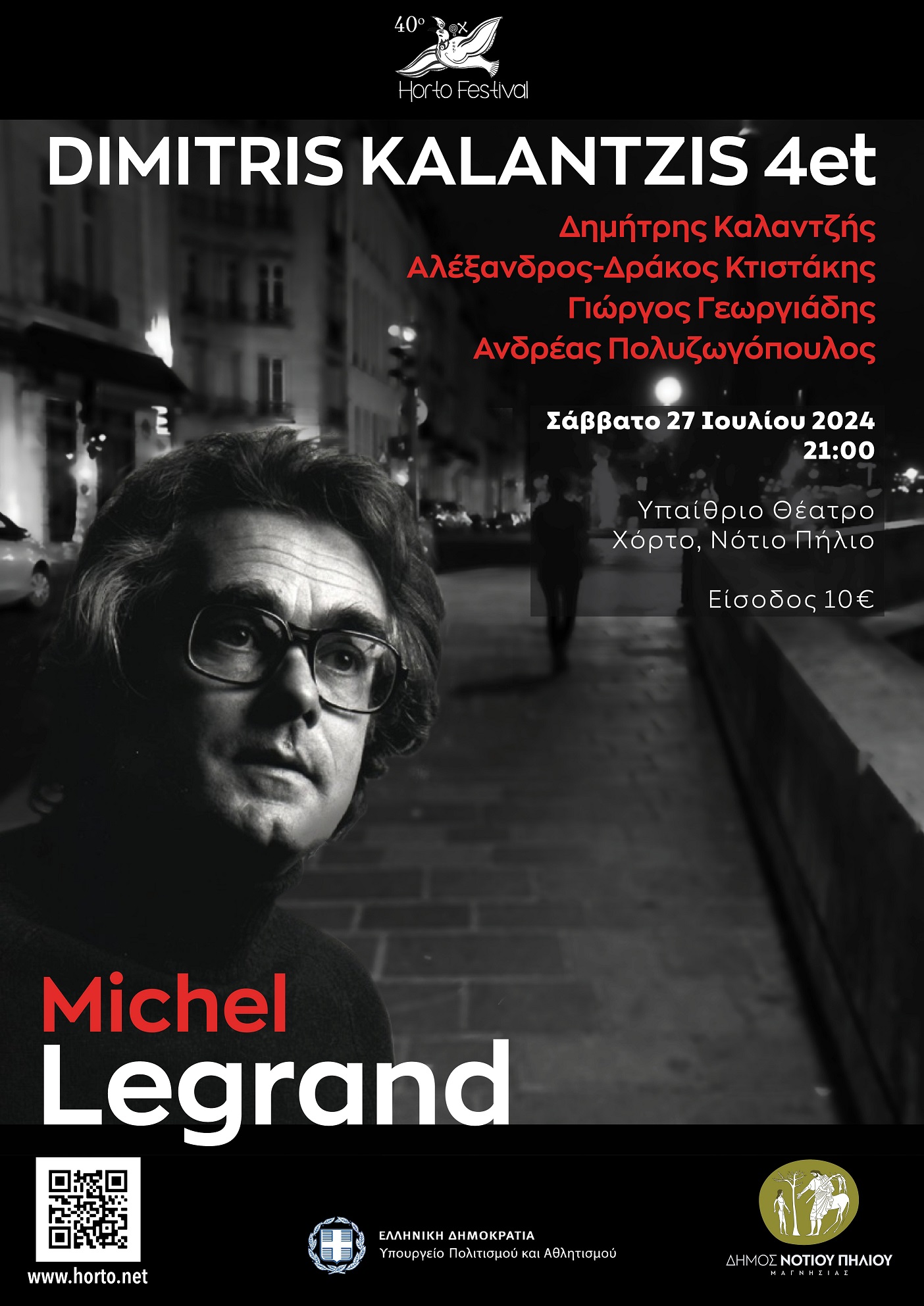 Το έργο του Michel Legrand, μια από τις πιο εμβληματικές προσωπικότητες στο χώρο της μουσικής του κινηματογράφου, θα αναδειχθεί μέσα από την ερμηνεία του Δημήτρη Καλαντζή και του κουαρτέτου του.