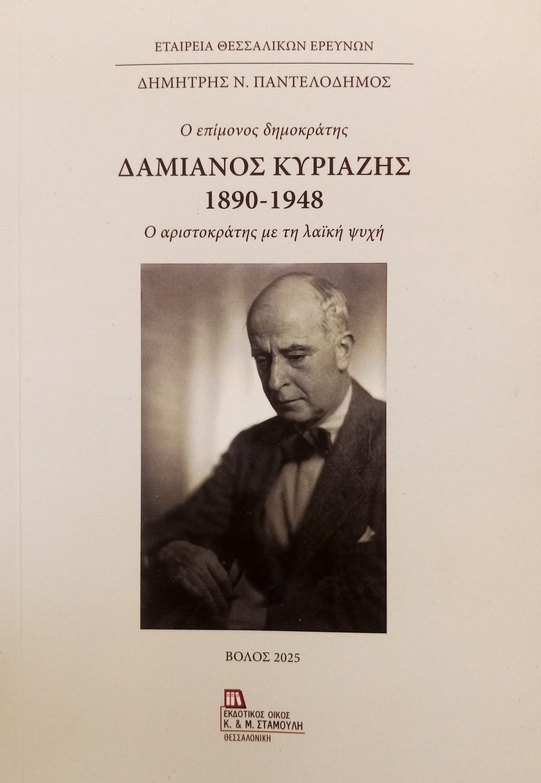 Εκδόθηκε από την Εταιρεία Θεσσαλικών Ερευνών και είναι στη διάθεση του αναγνωστικού κοινού η εμπεριστατωμένη μελέτη του συντοπίτη Ομότιμου Καθηγητή του ΕΚΠΑ και μέλους της Εταιρείας Θεσσαλικών Ερευνών Δημήτρη Παντελοδήμου, η οποία τιτλοφορείται «Δαμιανός Κυριαζής- Ο επίμονος δημοκράτης, ο αριστοκράτης με τη λαϊκή ψυχή». Για την εξαιρετική προσωπικότητα του Δαμιανού Κυριαζή λίγα ήταν γνωστά ως τώρα, μάλιστα ορισμένες πληροφορίες ήταν ανακριβείς και συγκεχυμένες. Χρειάστηκε λοιπόν η ενδελεχής ενασχόληση του καταξιωμένου πανεπιστημιακού Δημήτρη Παντελοδήμου, ο οποίος με εμβρίθεια ενέκυψε στο Αρχείο του Δαμιανού Κυριαζή, αναζήτησε πρόσθετες πληροφορίες σε πηγές στη χώρα μας και στο εξωτερικό και τελικά κατέληξε σε ένα εξαιρετικό πρωτότυπο πόνημα, το οποίο αποπνέει επιστημοσύνη και ταυτόχρονα προσφέρει εξαιρετικές πληροφορίες στους πολίτες του Βόλου και όχι μόνον.