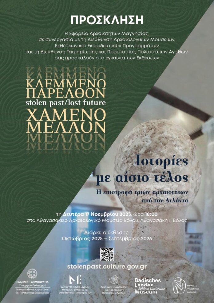 Τα εγκαίνια των εκθέσεων «Κλεμμένο παρελθόν – Χαμένο Μέλλον» και «Ιστορίες με αίσιο τέλος πρόκειται να τελέσει τη Δευτέρα 17 Νοεμβρίου στις 6 το απόγευμα στο Αθανασάκειο Αρχαιολογικό Μουσείο Βόλου, ο γενικός γραμματέας Πολιτισμού, Γιώργος Διδασκάλου. Πρόκειται για την επιστροφή τριών αρχαιοτήτων από την Ατλάντα των ΗΠΑ στο Αθανασάκειο.