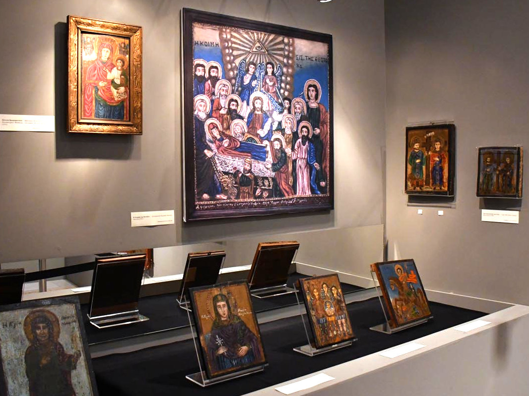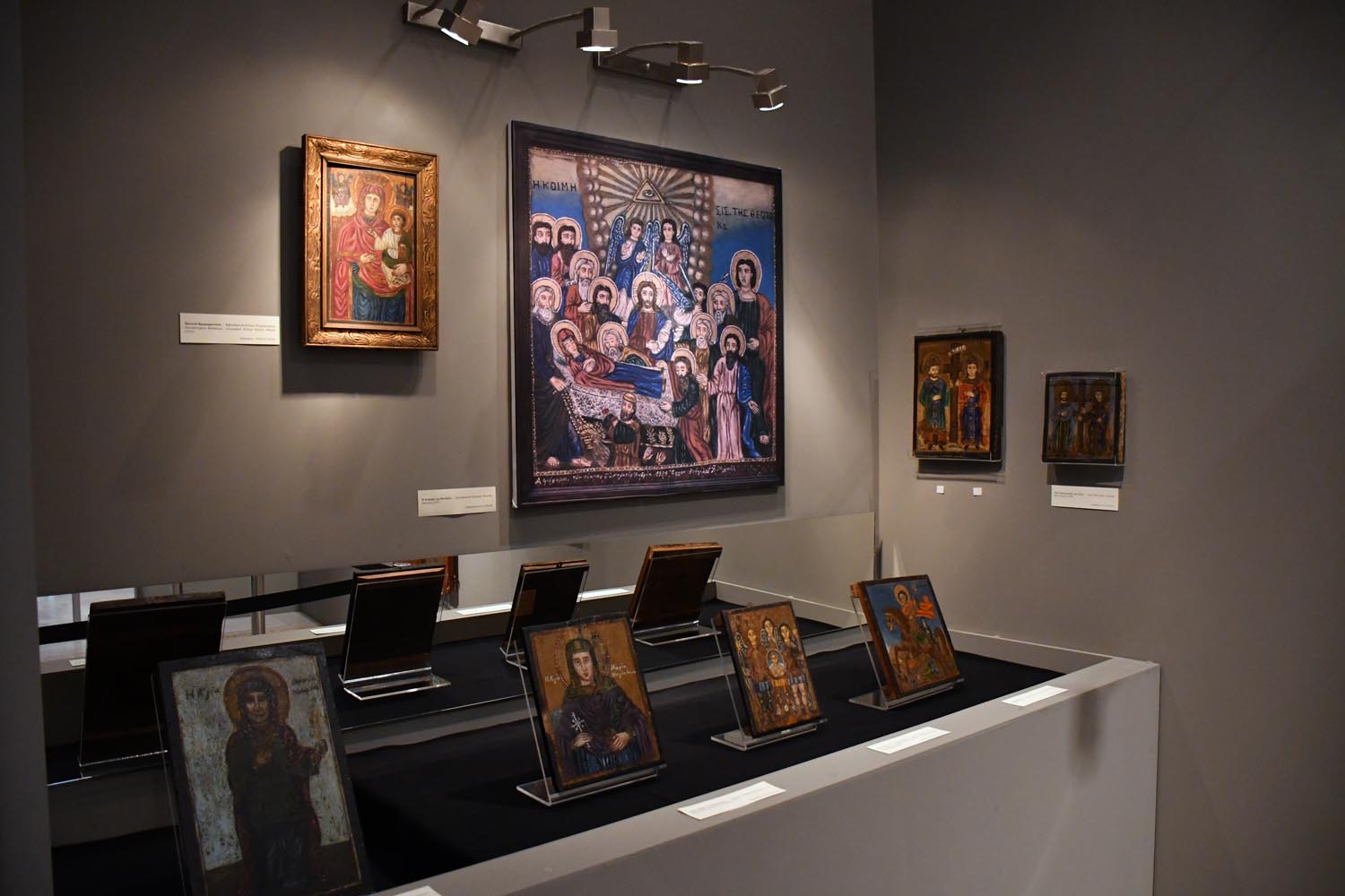 Η έκθεση περιλαμβάνει 17 έργα του λαϊκού ζωγράφου Θεόφιλου Χατζημιχαήλ, που αντλούν τη θεματογραφία τους από την εκκλησιαστική ζωγραφική παράδοση και αποτελεί την πρώτη προσπάθεια συγκεντρωτικής παρουσίασης αντιπροσωπευτικών θρησκευτικών έργων του μεγάλου λαϊκού ζωγράφου, ο οποίος είναι γνωστός κυρίως από τις κοσμικές τοιχογραφίες που φιλοτέχνησε στο Πήλιο και τη Λέσβο. Εκτός από τις εικόνες του Λιά, στην έκθεση συμπεριλαμβάνονται επιπλέον έντεκα εικόνες από ναούς του Πηλίου και από τη συλλογή του Μουσείου Βυζαντινής Τέχνης και Πολιτισμού Μακρινίτσας και τρεις εικόνες από τη συλλογή του Λαογραφικού Κέντρου Κίτσου Μακρή, το οποίο λειτουργεί ως Παράρτημα της Βιβλιοθήκης και Κέντρου Πληροφόρησης του Πανεπιστημίου Θεσσαλίας. Για τις ανάγκες της έκθεσης αρκετές από τις εικόνες της έκθεσης συντηρήθηκαν υποδειγματικά στα εργαστήρια της Διεύθυνσης Συντήρησης του Υπουργείου Πολιτισμού με ενέργειες της Εφορείας Αρχαιοτήτων Μαγνησίας.