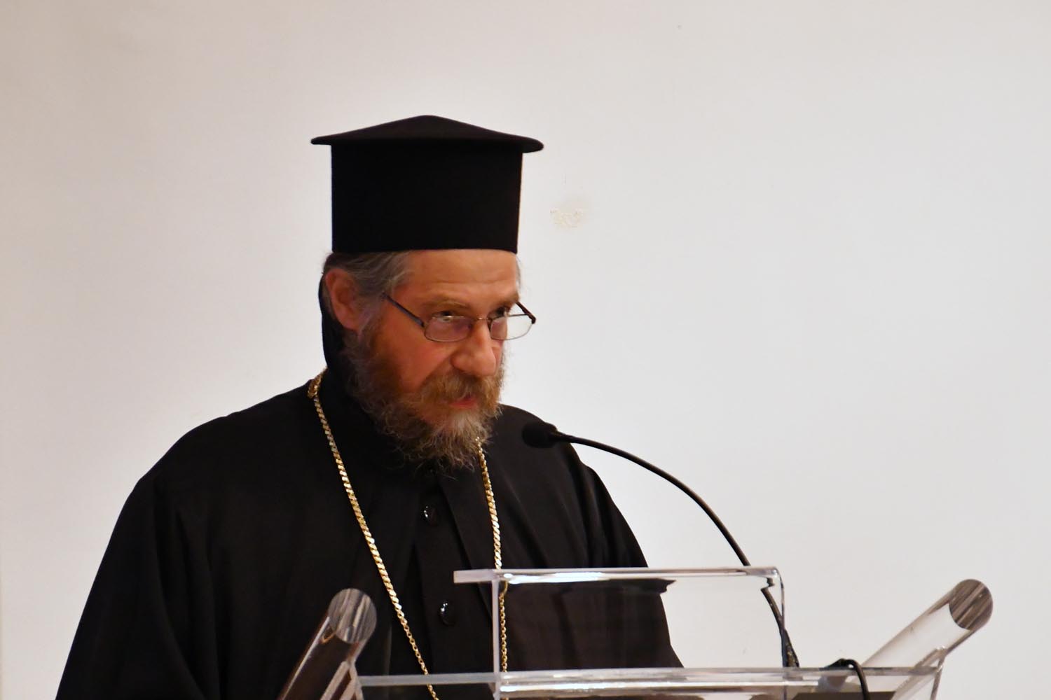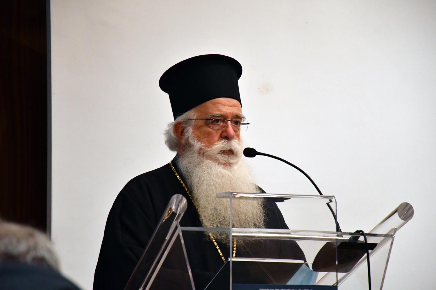 Στον χαιρετισμό που απηύθυνε ο Μητροπολίτης κ.κ. Ιγνάτιος τόνισε ότι «ο Θεόφιλος μπόρεσε να εκφράσει σε μια παράδοξη εποχή αυτό, που είναι ο πολιτισμός μας και η πίστη μας. Σήμερα το έχουμε πολύ περισσότερο ανάγκη, για να μπορέσουμε να δούμε το μέλλον, μαζί με τον “άλλον”, ο οποίος σήμερα είναι δίπλα μας, είναι μαζί μας, είναι κοντά μας. Για μας ο άλλος παραμένει μια ζωντανή εικόνα του Θεού». Και συνέχισε «ο ζωγράφος Θεόφιλος δούλεψε με πολύ κόπο, πόνο, μεράκι και αγάπη. Ο Θεόφιλος δεν μιμείται· δίνει τον εαυτό του. Εκφράζει αυτό που έχει η ψυχή του, και το εκφράζει αυθεντικά. Θέλω να πιστεύω ότι αυτή η έκθεση είναι ένας καθρέφτης, όπου μπορούμε να αναμετρηθούμε με το αν εμείς είμαστε ικανοί, όπως τότε αυτός, να εκφράσουμε την εποχή μας, βασισμένοι στις ρίζες μας, αλλά με την προοπτική του μέλλοντος. Με σεβασμό στο κάθε πρόσωπο· κρατώντας την ταυτότητα μας, αλλά χωρίς να αρνηθούμε και ότι θα συμπορευτούμε με άλλες ταυτότητες. Αυτό είναι η πρόκληση».