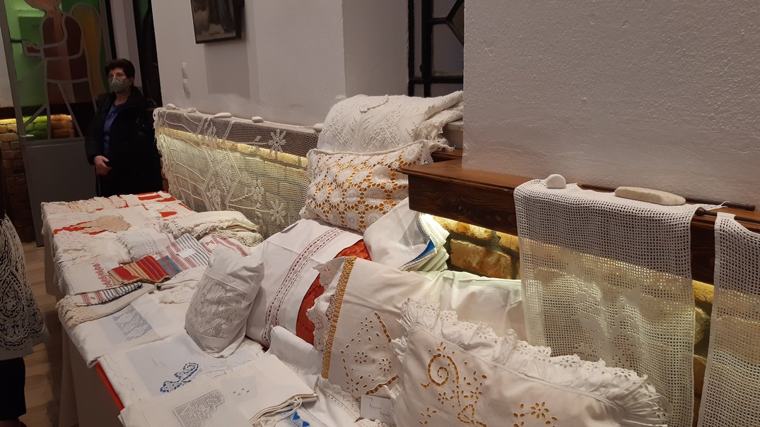 Από την πλευρά της η Πρόεδρος της Πολιτιστικής Εστίας Μικρασιατών Νέας Ιωνίας Μαγνησίας «Ίωνες» κ. Άννα Πετσιάβα Παπανικολάου ανέφερε πως «η Εστία «Ίωνες» τιμάει τις γυναίκες της προσφυγιάς που σημάδεψαν την ιστορία της Νέας Ιωνίας και τη Μικρασιάτισσα γυναίκα που έφερε μαζί της τον πολιτισμό», και συμπλήρωσε πως η έκθεση «Δαντέλες και κεντίδια» διατηρεί «ζωντανή» την ιστορική μνήμη. Αρκετά εκθέματα μετρούν παραπάνω από έναν αιώνα ζωής, ενώ σε κάποια μαξιλάρια είναι κεντητή η χρονολογία δημιουργίας τους, αλλά και τα αρχικά ή τα ονοματεπώνυμα των δημιουργών τους, με ορισμένα να χρονολογούνται από το 1870.