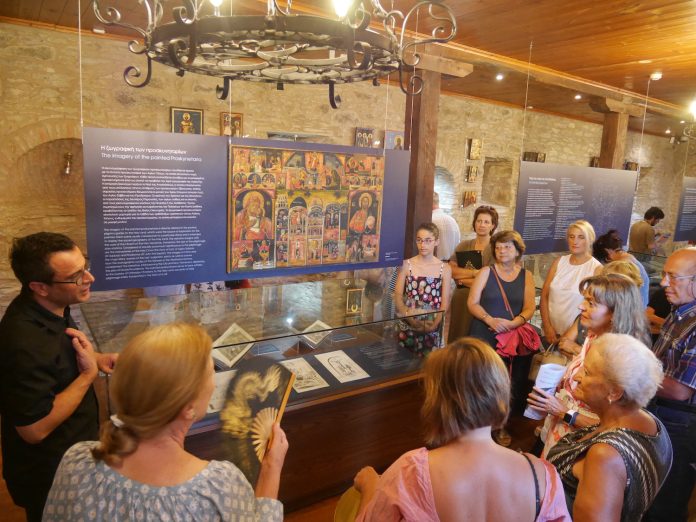 Την Κυριακή 30 Ιουλίου 2017, εγκαινιάσθηκε η έκθεση «Ταξίδι στους Αγίους Τόπους, μέσα από τα προσκυνητάρια του Βυζαντινού και Χριστιανικού Μουσείου», στο Μουσείο της Ιεράς Μονής Ευαγγελισμού της Θεοτόκου Σκιάθου. Η έκθεση διοργανώθηκε από το Βυζαντινό και Χριστιανικό Μουσείο και τον Πολιτιστικό Σύλλογο ‘Η Σκιάθος’, μετά από πρόταση του Συλλόγου προς το Μουσείο και τελεί υπό την αιγίδα της Ιεράς Μητροπόλεως Χαλκίδος, Ιστιαίας και Βορείων Σποράδων.